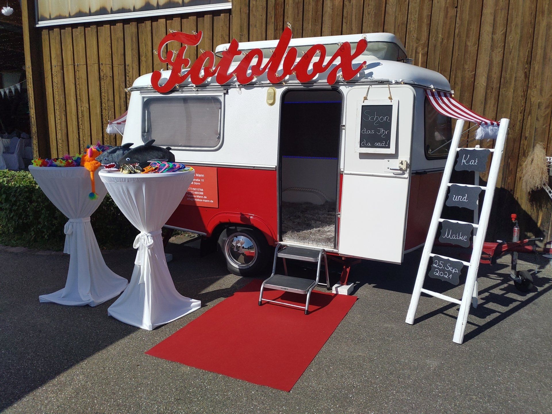 Wir liefern Ihnen den Wohnwagen in Dürrn und Umgebung selbstverständlich direkt zum Standort und holen Ihn auch wieder ab. Alle Services, wie auch bei der Classic Box und der Avante Garde Box, sind hier ebenfalls inkludiert. Fotobox Mann ist Ihr kompetenter und professioneller Dienstleister, wenn es um ausgefallene und individuelle Event-Fotos geht!